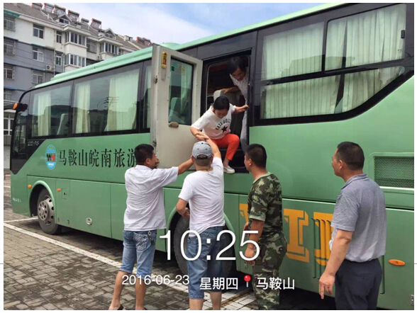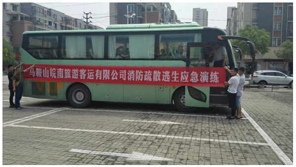 2016年6月23日皖南旅游客运公司全体员工开展消防疏散逃生、应急演练!